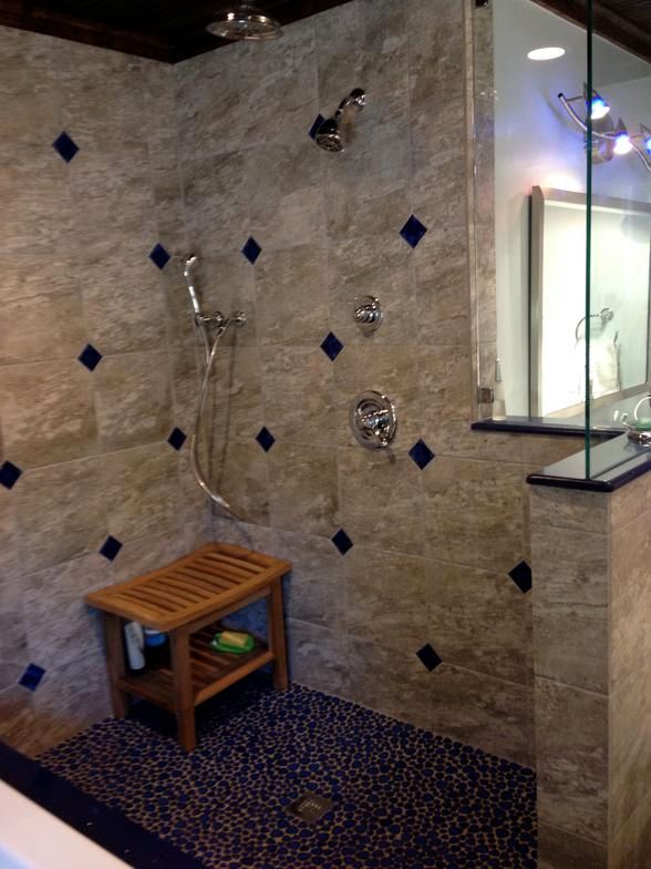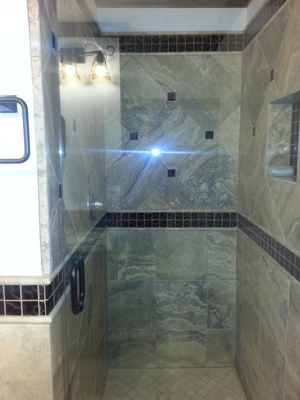 From there we begin setting the tiles that you have selected w/ trim and misc. enhancements custom designed by you.